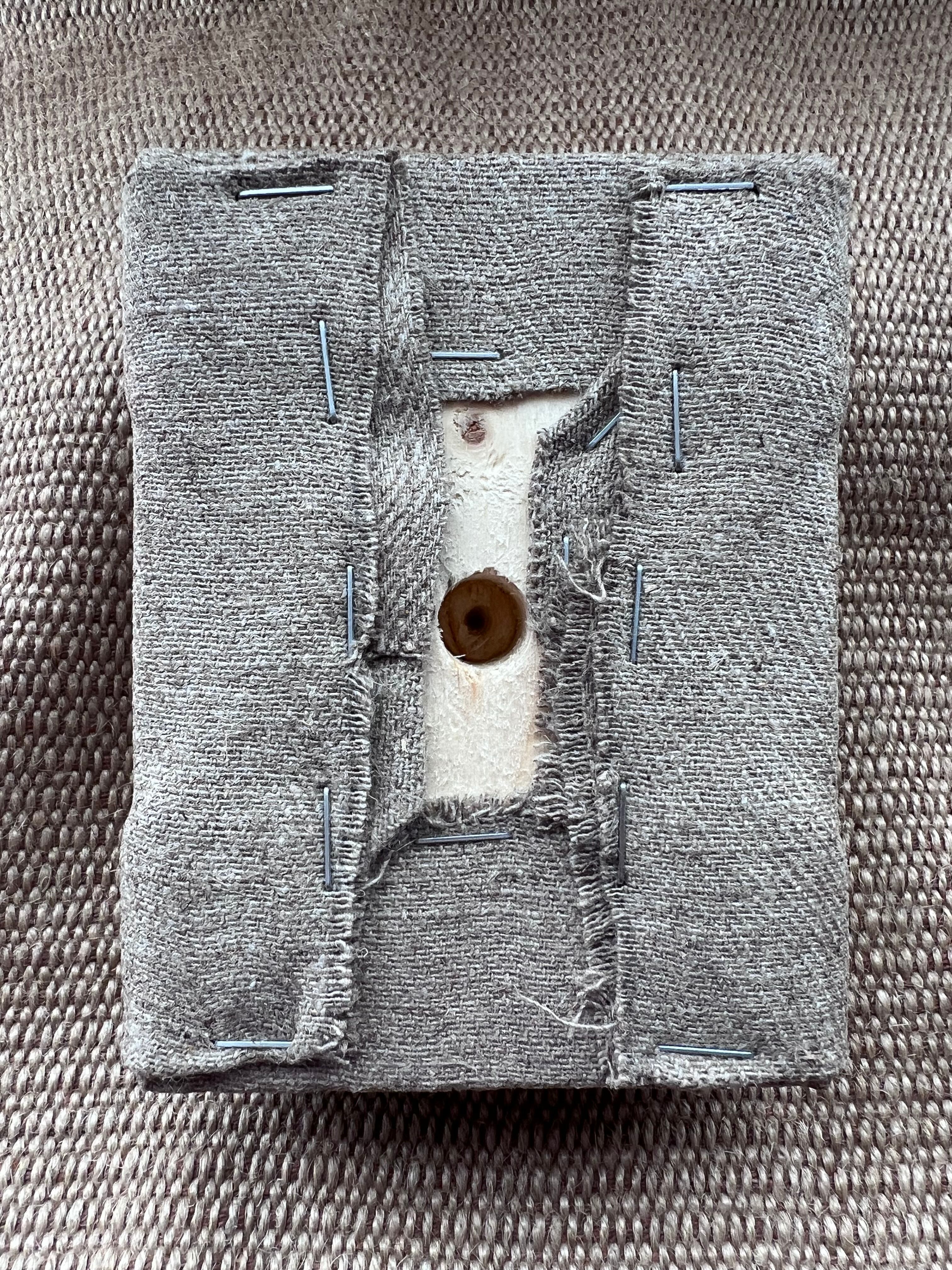 市販キャンバスを基底材に張るより生亜麻布を張ってから膠引きした方がより頑丈ではと思い綾織の耐久度の高い亜麻布を張った。普通のキャンバスと違い綾織特有の斜めのラインが独特であるが割と昔のキャンバスは様々な丈夫な織りのものが使われてきたので歴史的でもある。