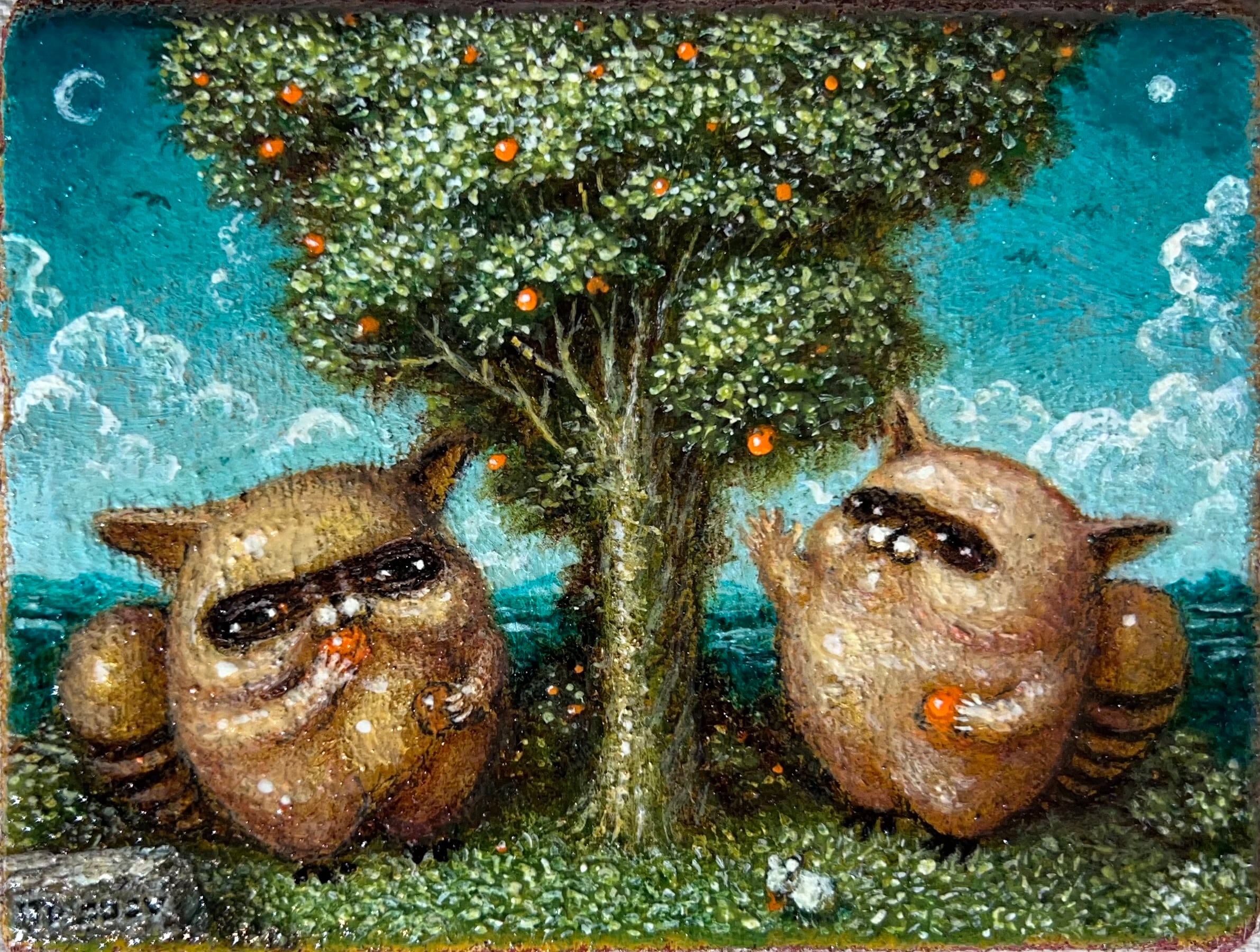 善悪の知識の実だの生命の実だのを勝手に貪るたぬき。別に禁じられてないので罰せられない。食べなくても最初から賢いし最初から死がない。とワイは思う。