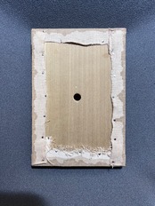 - Raw linen stretched with small tacks onto perforated lauan plywood
