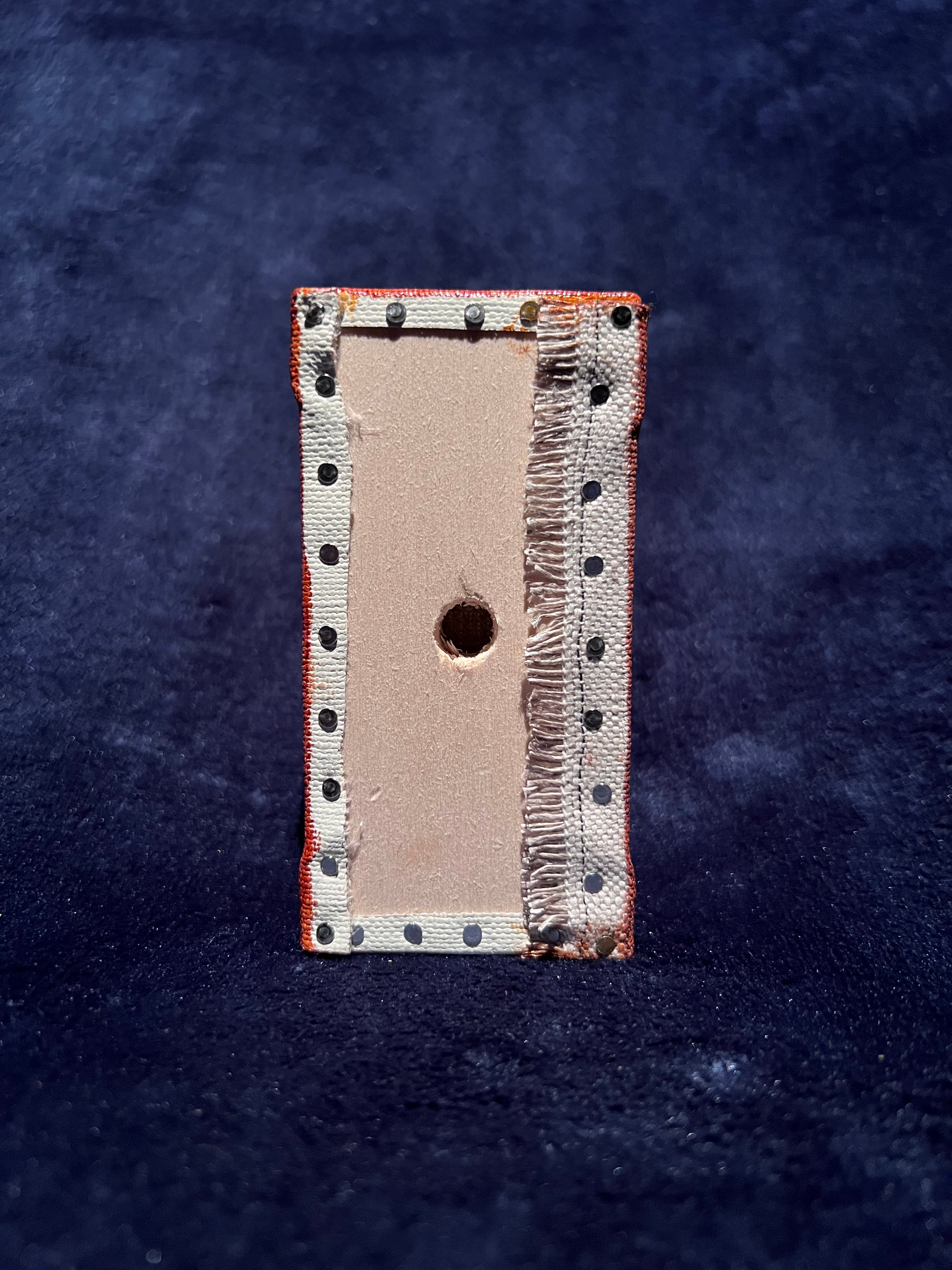 シナ材に地塗済キャンバス小釘張り(壁掛用穴有)