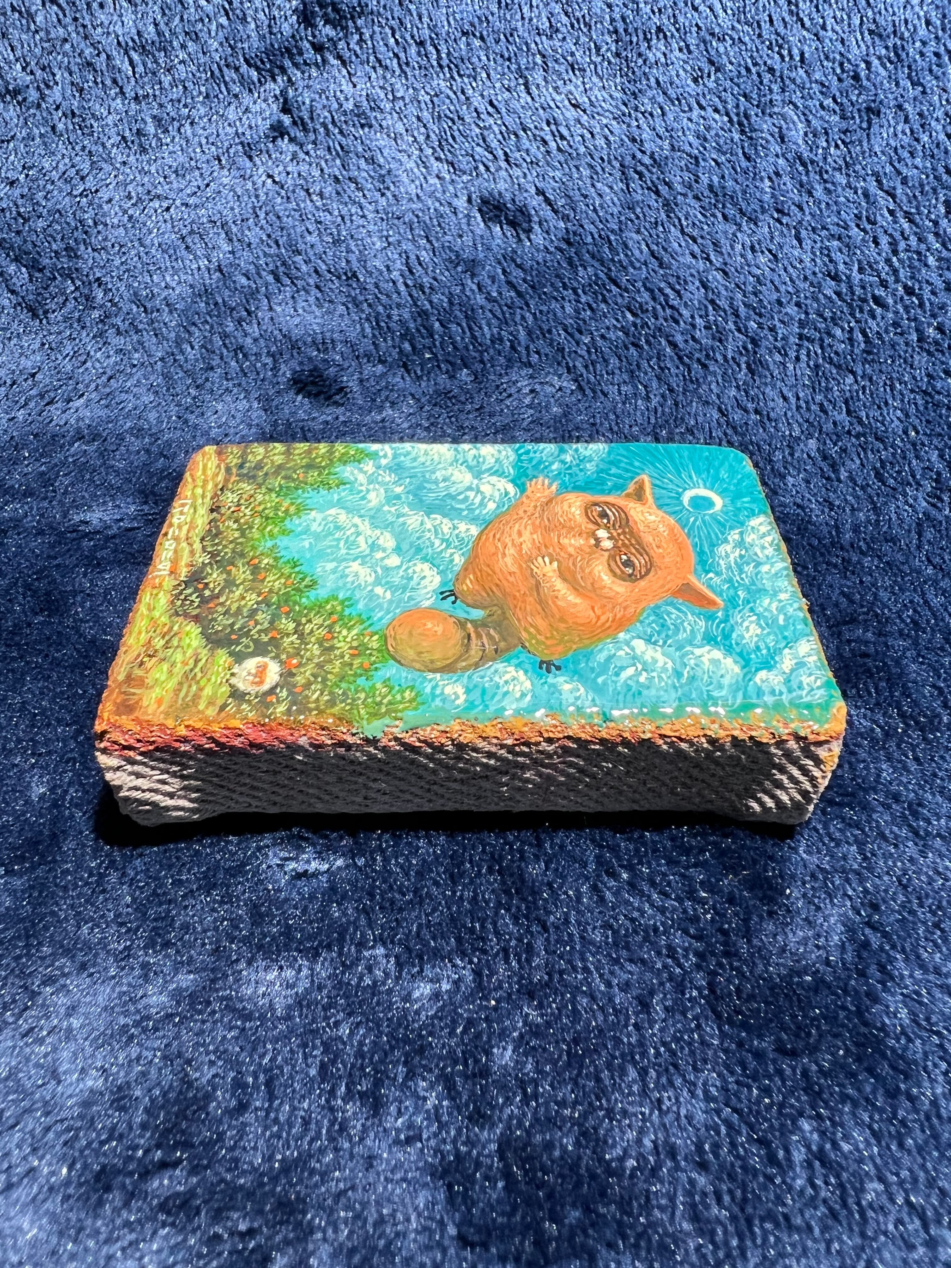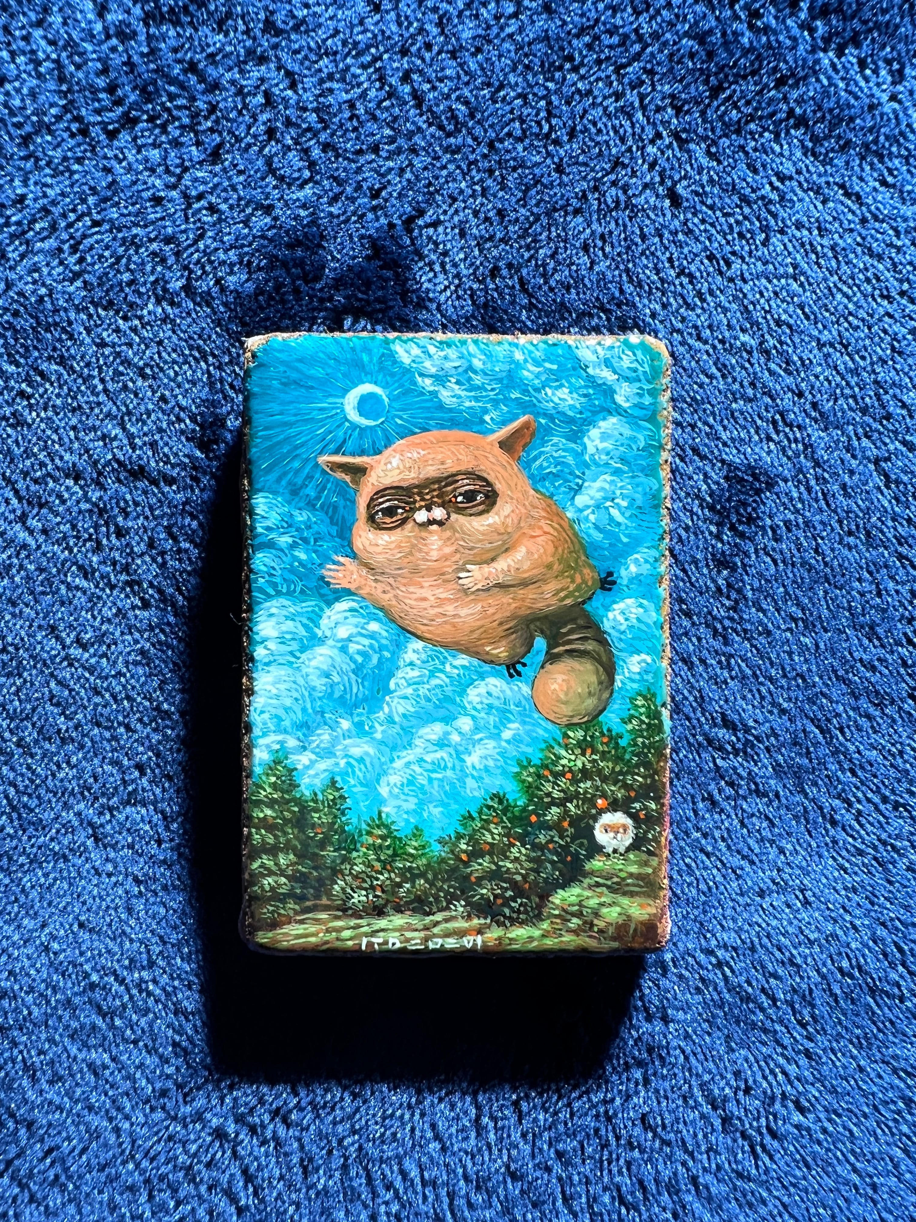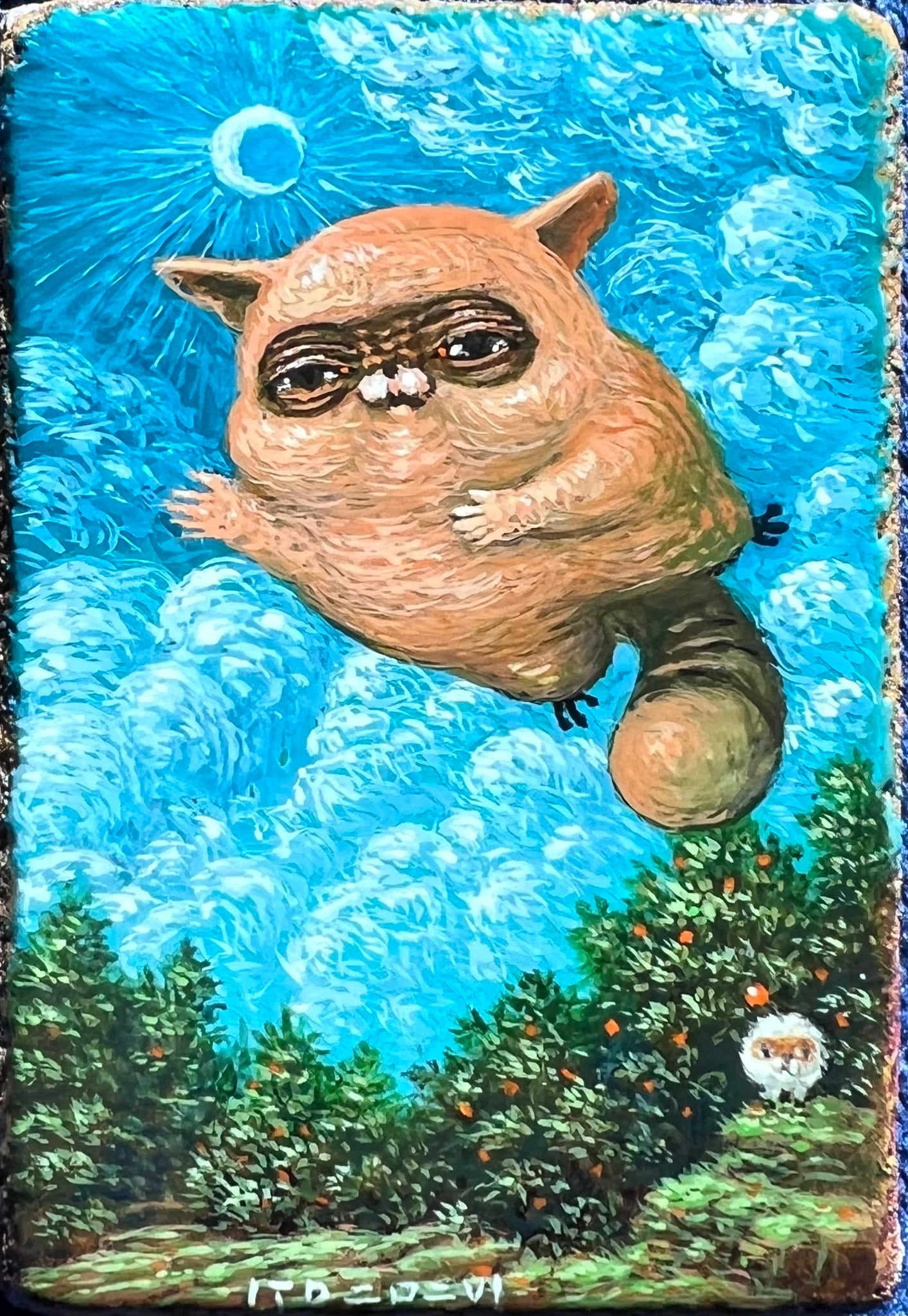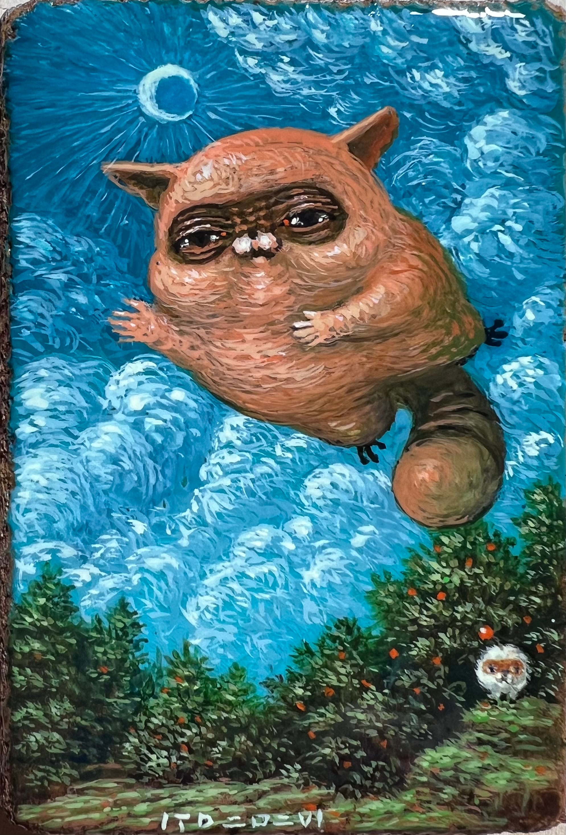 A painting of something fluffy and floating, wanting to move around.