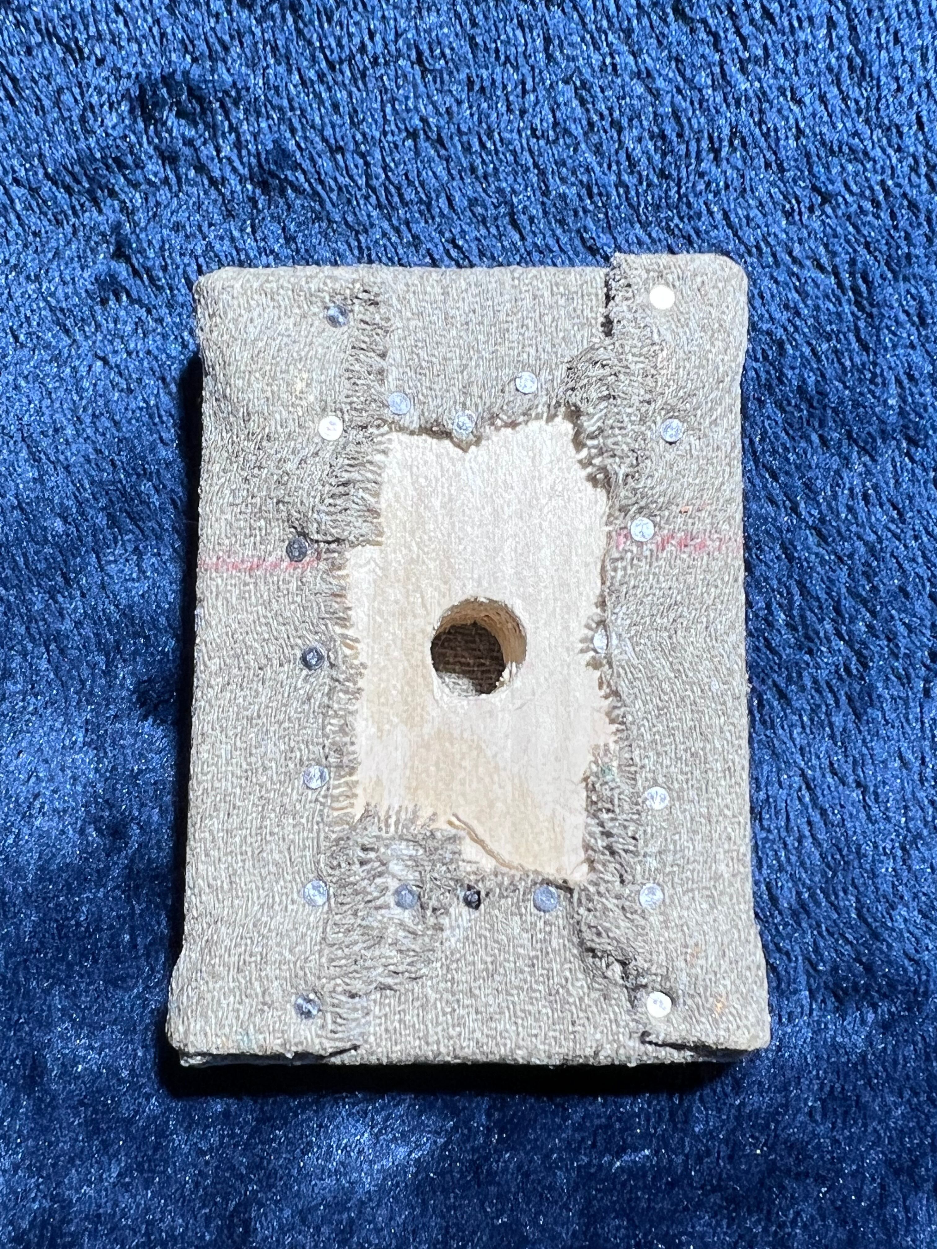 シナ材に生亜麻布小釘張り(壁掛用穴有)