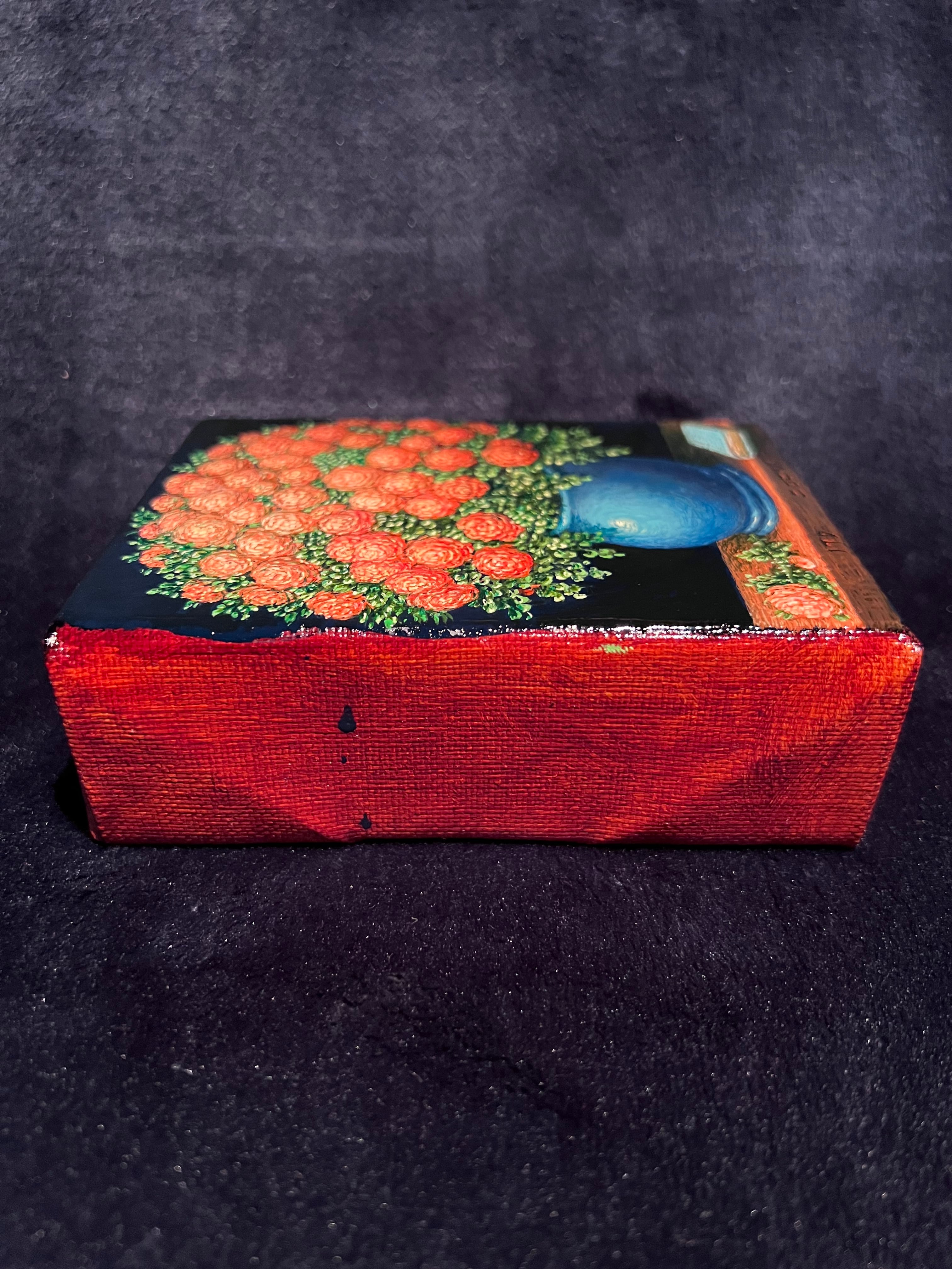 青い花瓶(どういう物を花瓶というか詳しく知らない)はアフガニスタンにヘラートガラスみたいなイメージで描いたが、陶磁器かもしれない。