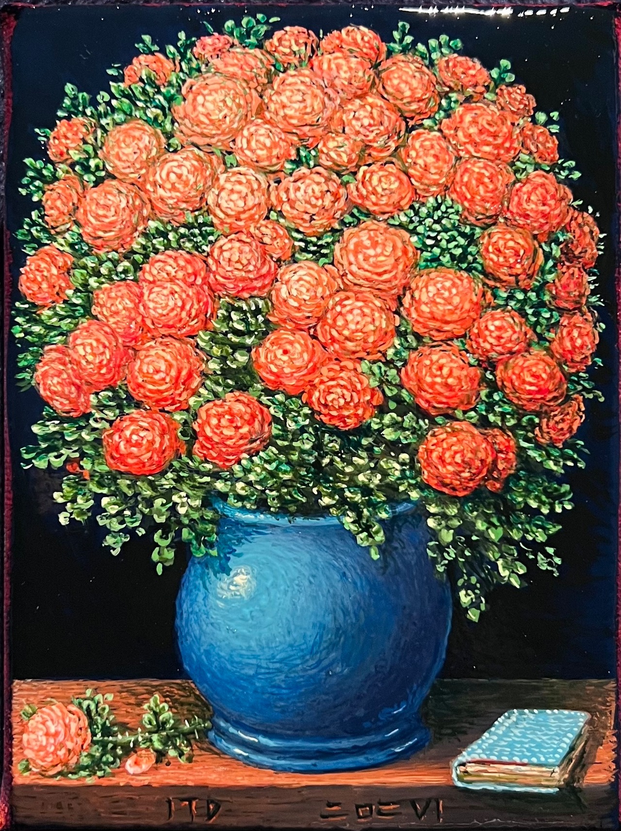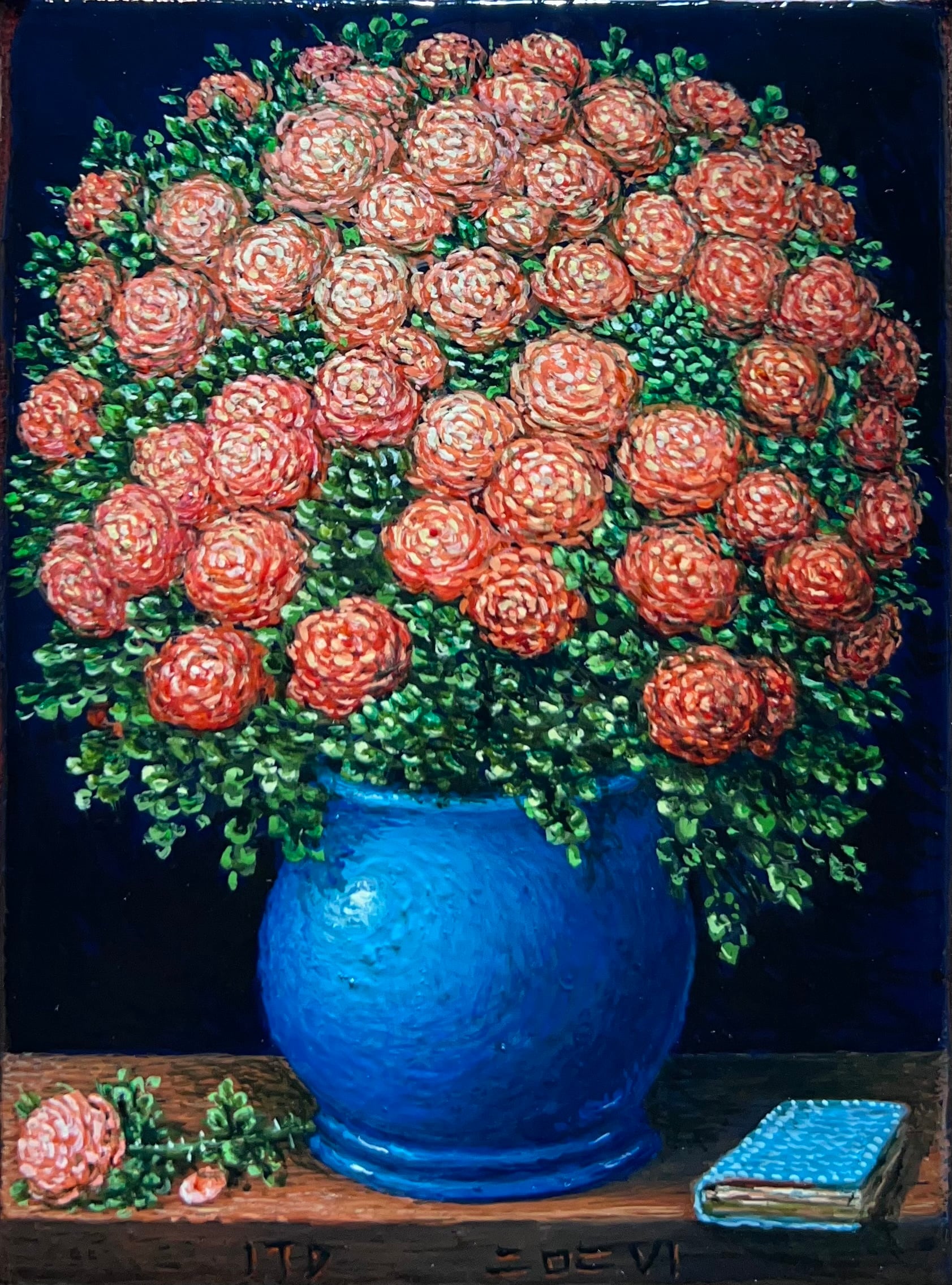 『本と青い花瓶と薔薇』“Book, Blue Vase, and Roses”