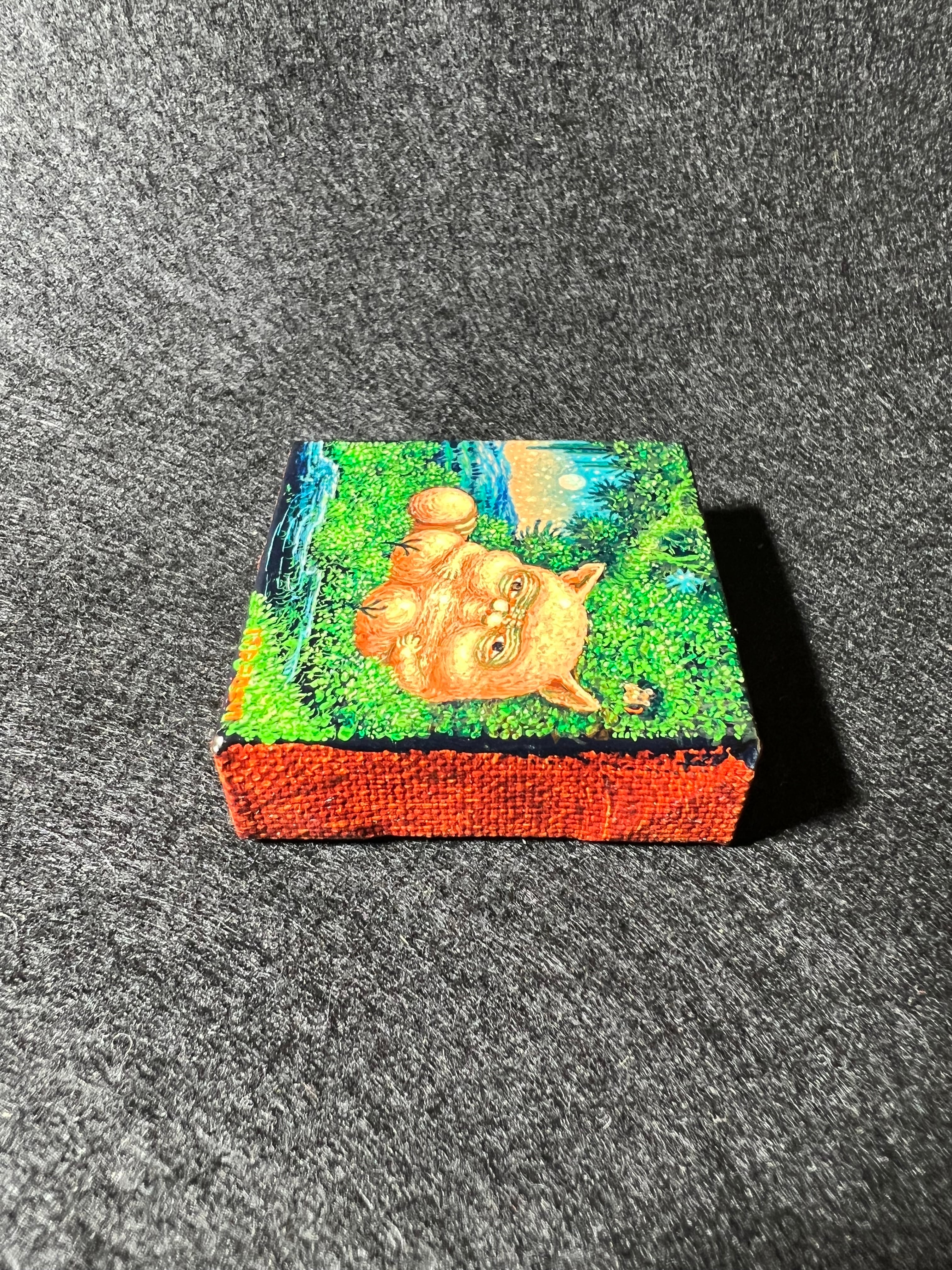 Cypress panel with pre-primed canvas hand-stretched with small nails (with hanging hole on the back)